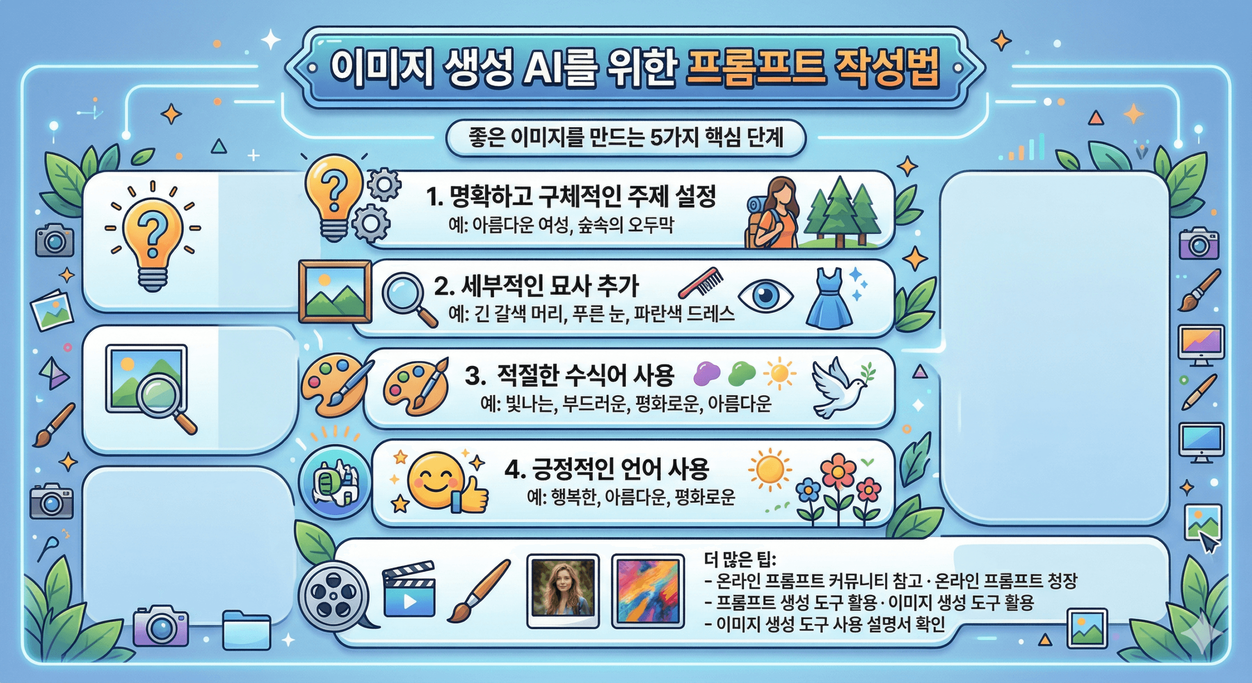 실전 팁: 좋은 프롬프트는 길이가 아니라 선명함으로 판단하는 편이 맞습니다. 빠진 조건 없이 명확하면 짧아도 강합니다.